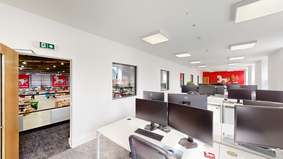 To accommodate the growing team of office-based staff, the width of the mezzanine floor was extended. This presented a few challenges, and extensive structural work was required to make sure that the integrity of the structure was maintained, whilst also ensuring that all compliance requirements and energy related regulations were met.